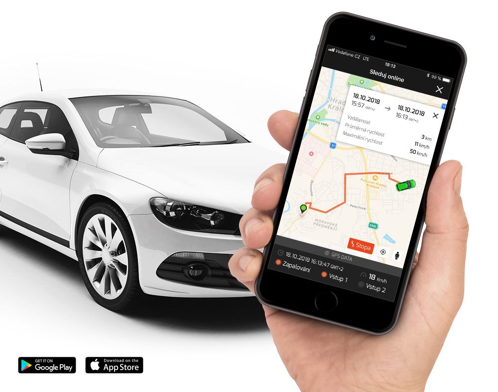 Mobilní aplikací je možné zjistit reálnou polohu vozidla včetně historie jízd (k dispozici je začátek a konec jízdy, ujetá vzdálenost, průměrná a maximální rychlost) nebo napětí baterie či ovládat přídavná zařízení např. sirénu nebo imobilizační okruh.