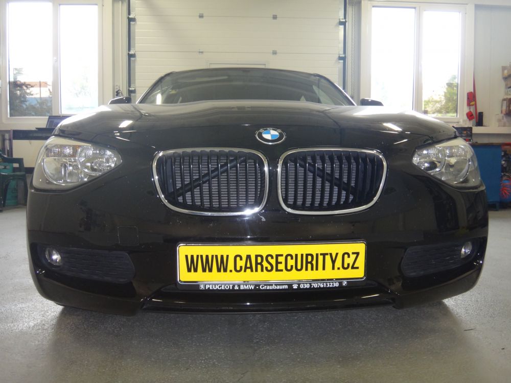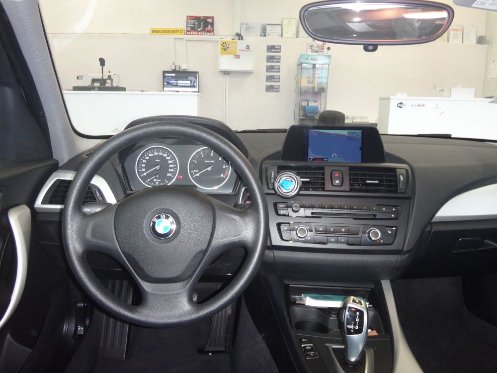 BMW 1 montáž zákledního autoalarmu Jablotron Nestor CA-340can. Autoalarm je možné ovládat originálním klíčem od vozidla, hlídá dveře, kapotu, kufr a je vybaven imobilizačním okruhem a otřesovým čidlem.