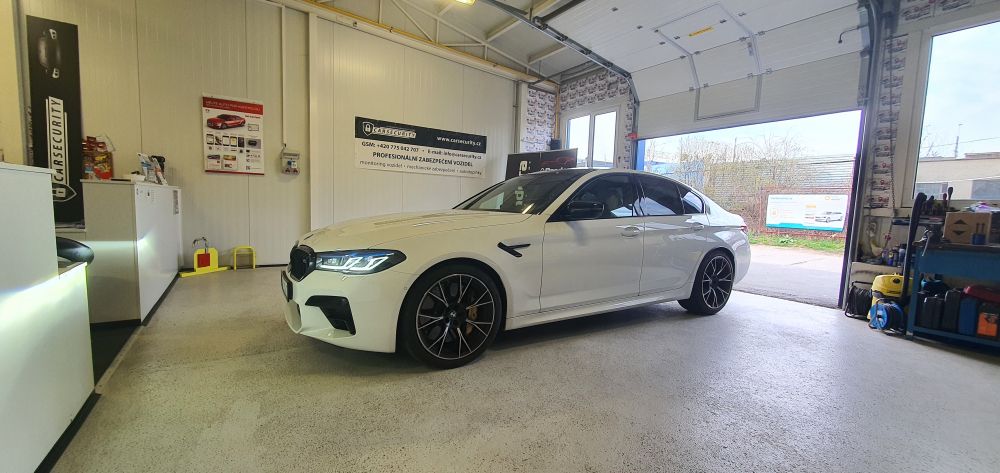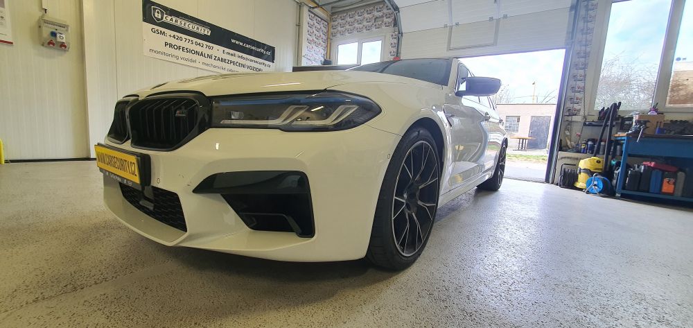 Zabezpečení nového vozu BMW M5 Competition elektronickým systémem s připojením na PCO 24/7 a blokací motoru proti neoprávněnému startu.