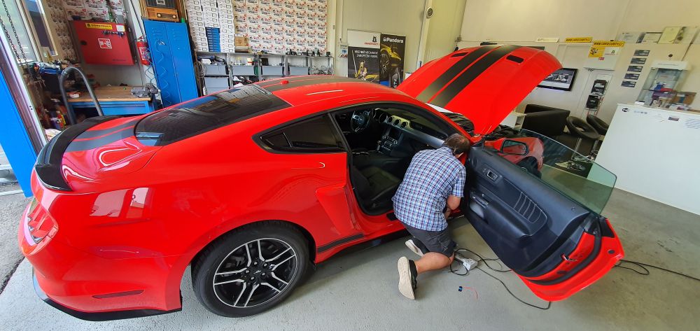 Ford Mustang GT montáž GPS Dozor se vzdálenou blokací motoru
