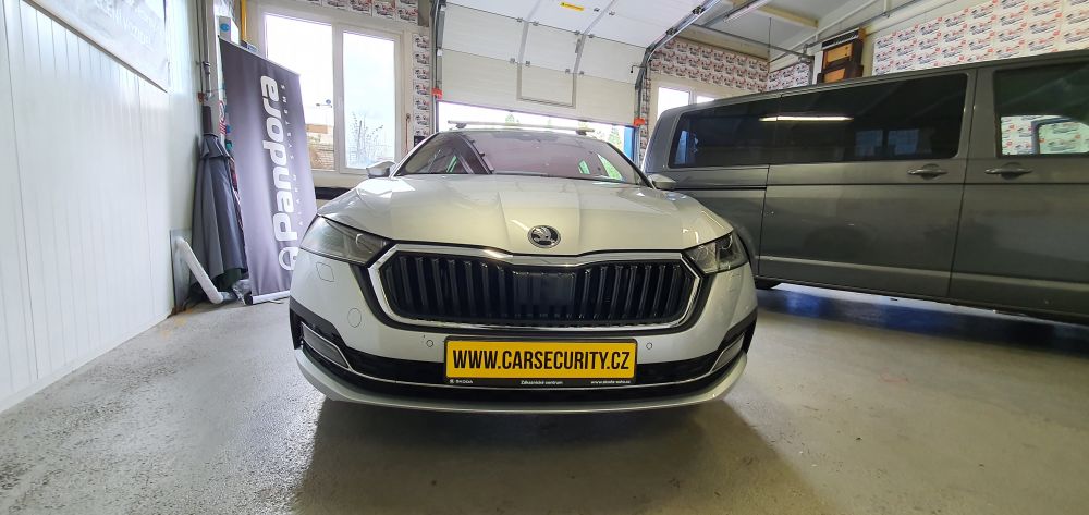 Škoda Octavia IV montáž autoalarmu Pandora Light PRO s ochranou bezkontaktního ovládání centrálního zamykání.