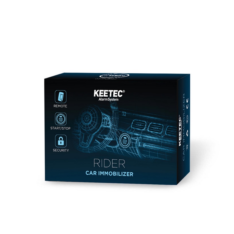 Bezkontaktní imobilizér Keetec RIDER je navržen pro bezpečné blokování tlačítka START/STOP, případně jiných nízko proudových obvodů nejmodernějších vozidel, čímž spolehlivě blokuje neoprávněný start motoru. Systém je vhodný pro většinu vozidel se startovacím tlačítkem
