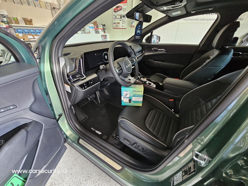 Kia Sportage montáž autoalarmu Pandora SMART v3. Moderní can bus autoalarm střežící otevření dveří, kapoty, kufru s 3D akceleračním čidlem a blokací motoru proti neoprávněnému startu.