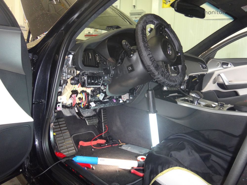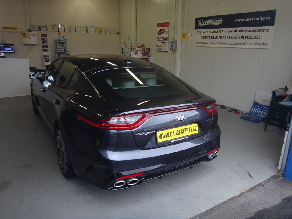 Kia Stinger instalace GSM/GPS autolarmu Jablotron s kontrolou zarušení GSM signálu.