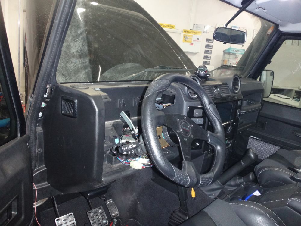 Land Rover Defender instalace autoalarmu Jablotron CA-2103 s náklonovým detektorem a detektorem tříštění skla.