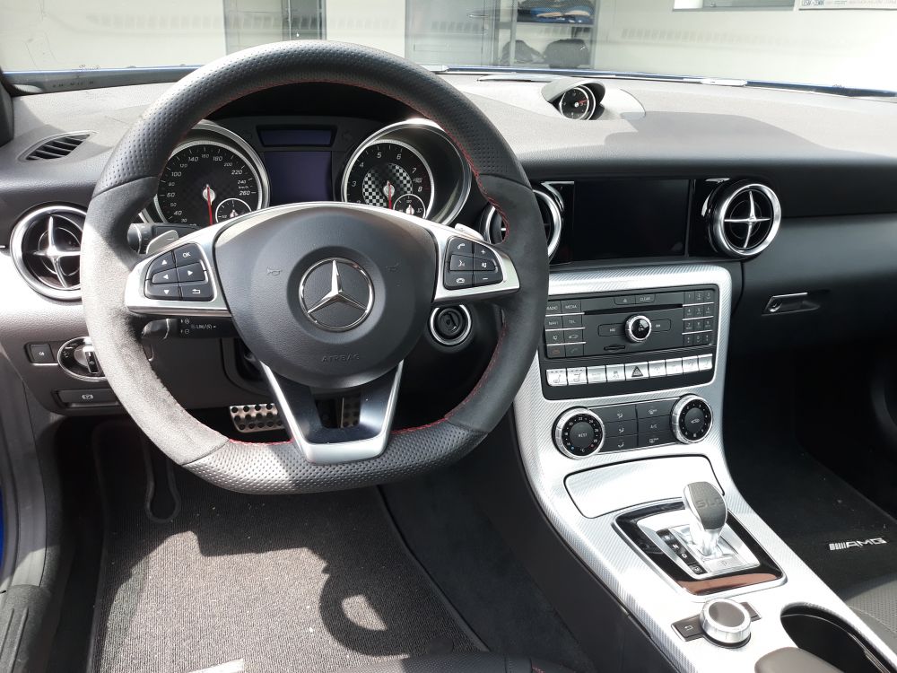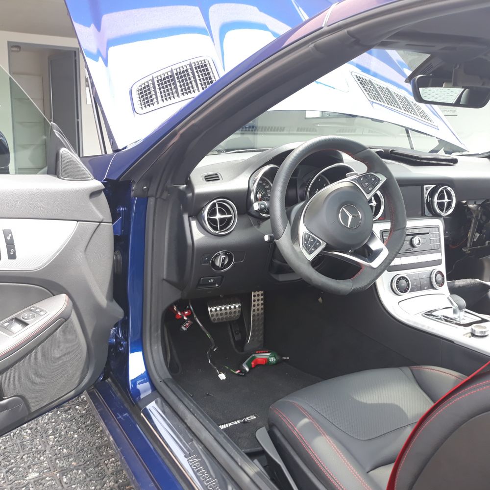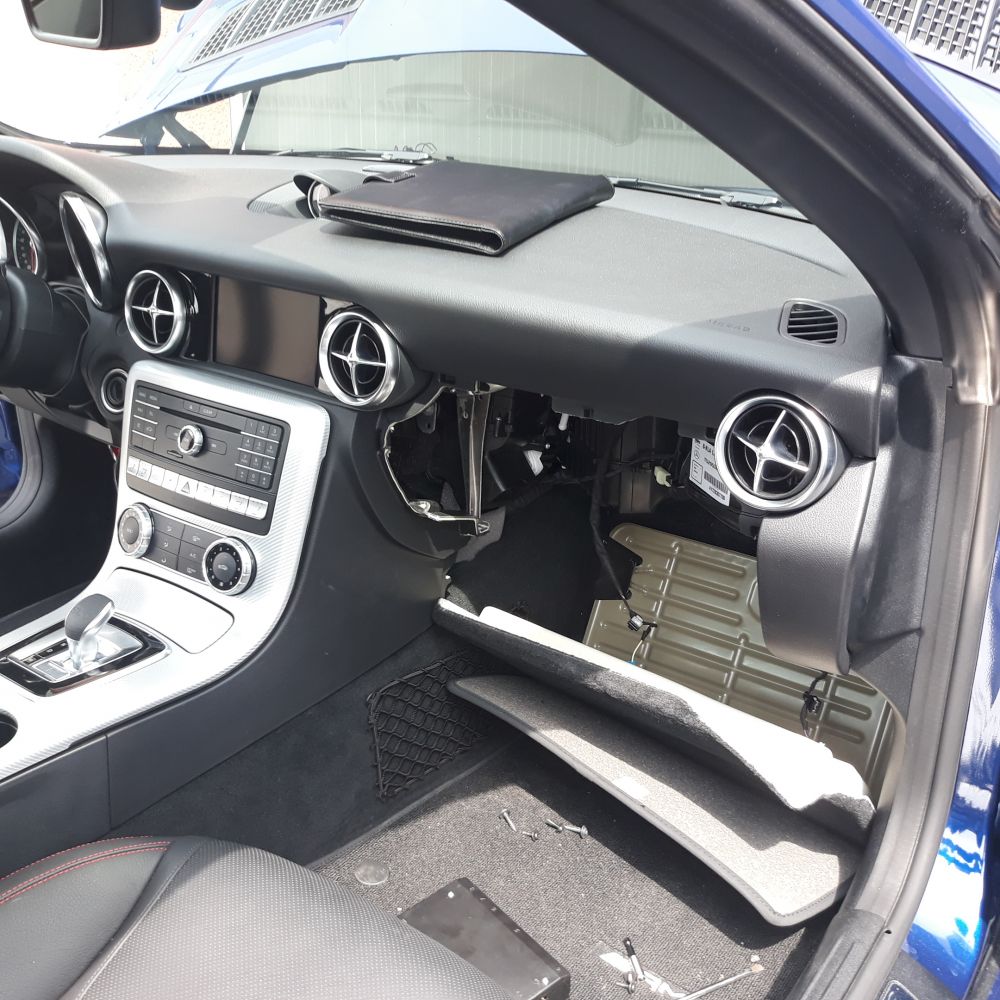 Mercedes Benz SLC montáž ONI Střežení. Elektronické zabezpečení s možností radiového dohledání vozu. Mobilní montáž instalace u zákazníka.