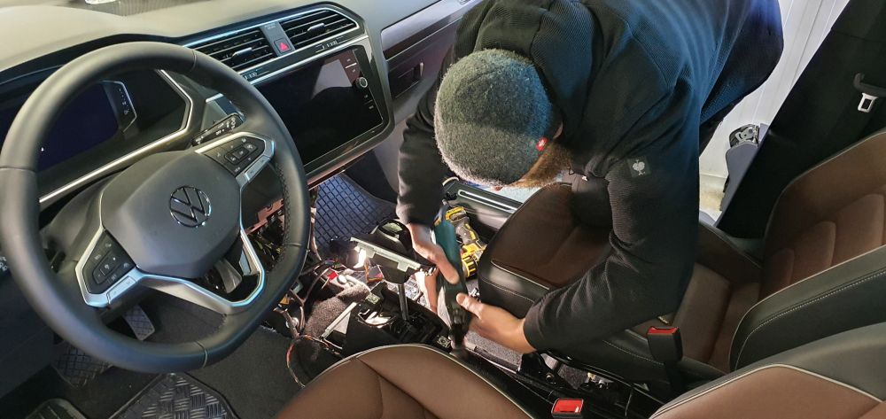 Montáž zámku řazení Construct do nového vozu VW Tiguan model 2021. Vozidlo bylo vybaveno automatickou převodovkou DSG.
