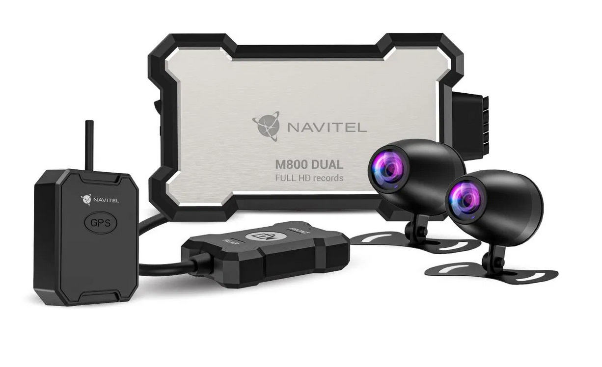 Navitel M800 DUAL je duální kamera určená pro motocykly, čtyřkolky, skútry nebo jiné outdoorové stroje. S dvojitým Full HD záznamem (přední i zadní kamera), GPS, Wi-Fi a dálkovým ovladačem na řídítka poskytuje spolehlivý a detailní záznam vaší cesty za každých podmínek.
