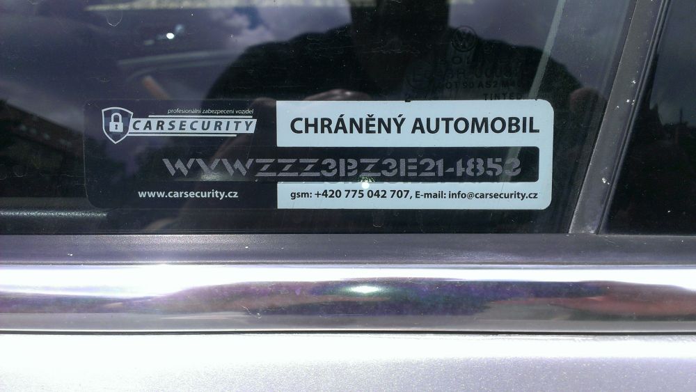 • pískování VIN kódu na okna nelze odstranit