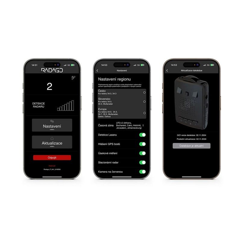 Díky USB-C připojení a neomezeným aktualizacím firmware i GPS databáze budete vždy připraveni na nové radarové systémy. RADAGO GO! není jen detektor – je to budoucnost ve vaší kapse.
