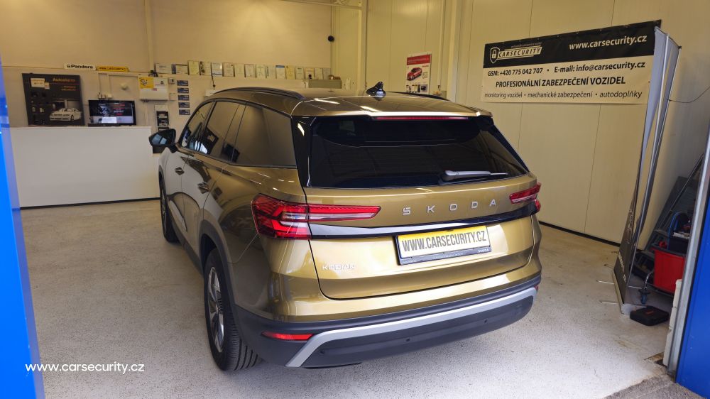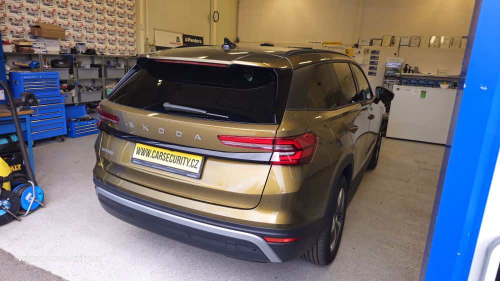 Zabezpečení nového auta Škoda Kodiaq II autoalarmem Pandora Light PRO s dálkovým startem motoru.