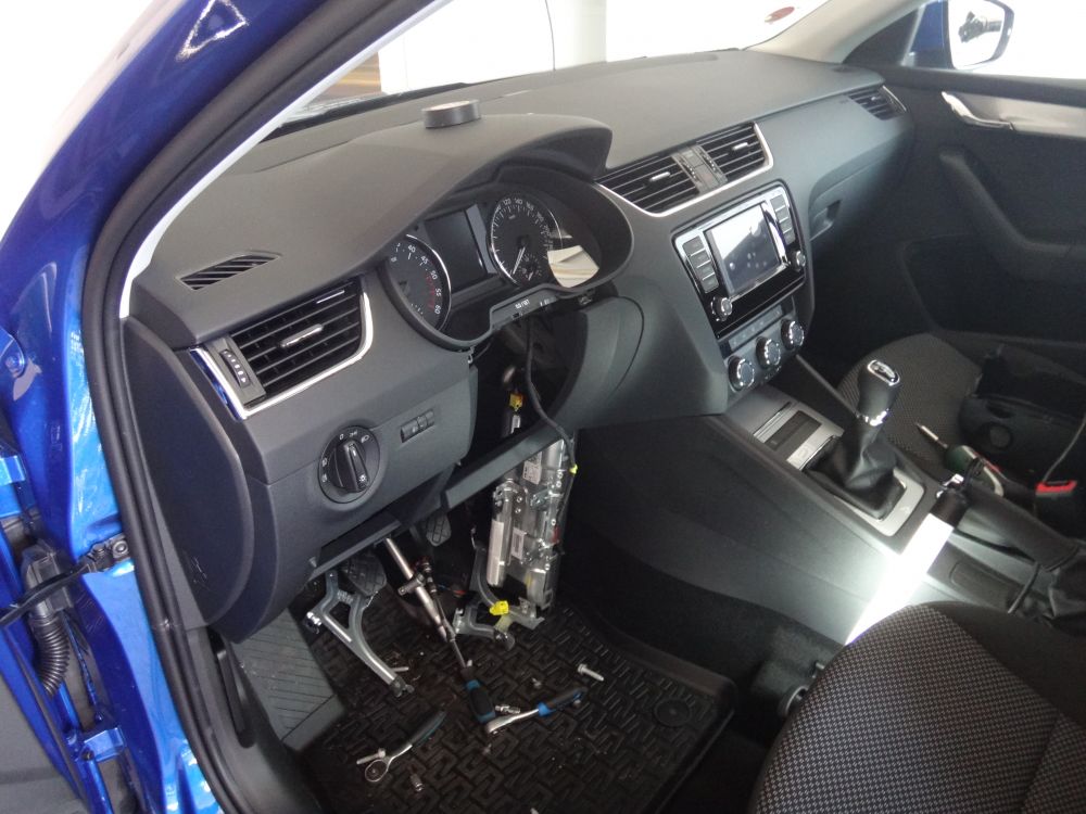 Škoda Octavia III montáž zámku volantu Zeder lock.