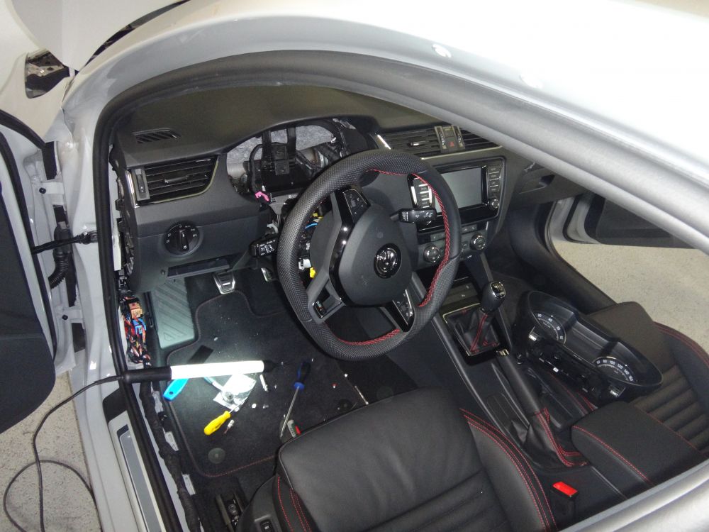 Škoda Octavia III RS 230 manuál montáž zámku řazení Construct a autoalarmu Jablotron CA-2103.