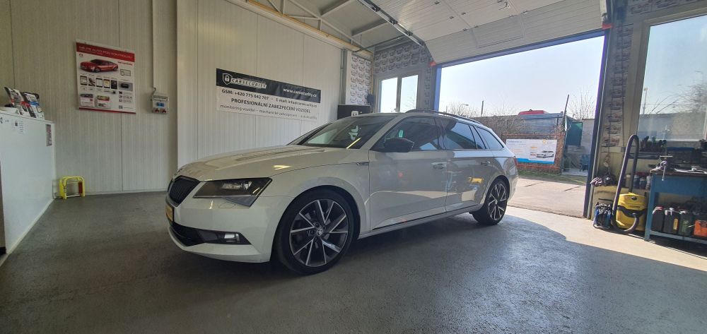 Škoda Superb III montáž autoalarmu GSM/GPS Jablotron CA-2103 s připojením na PCO.