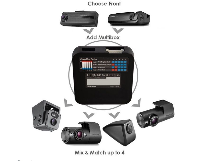 MB100 video splitter umožní připojit k hlavní kameře (F200PRO, nebo T700) až 4 přídavné kamery.