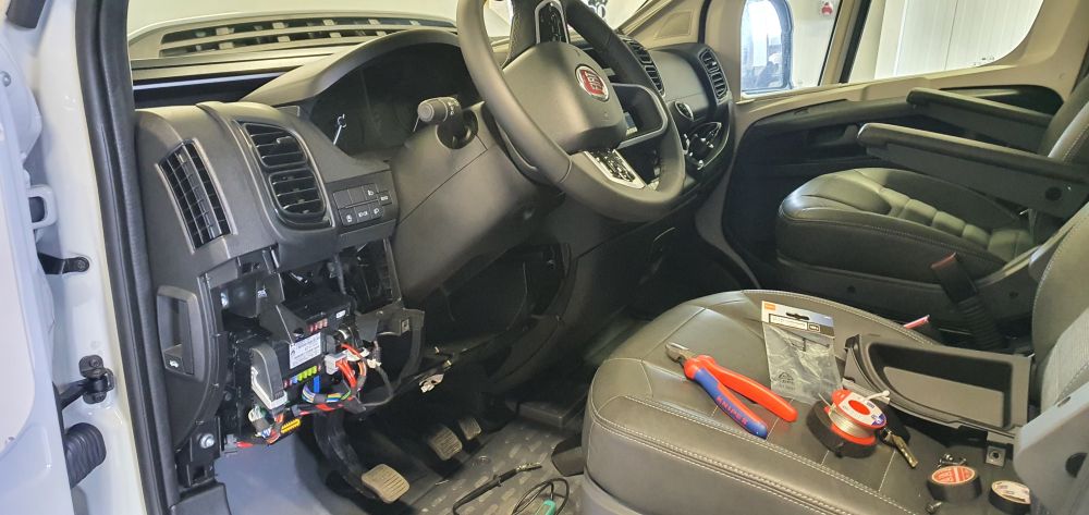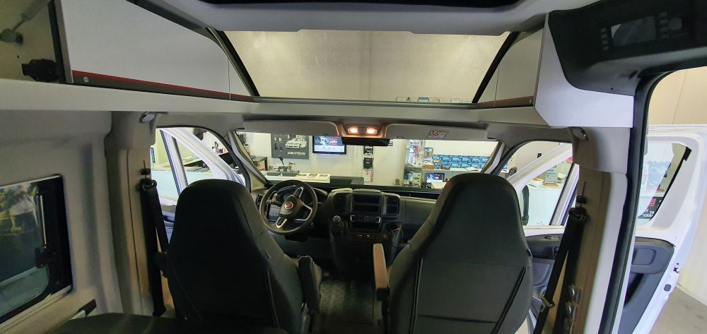 Zabezpečení Fiatu Ducato ADRIA Twin640SGX model 2022 autoalarmem Jablotron CA-2103 s použitím bezdrátových detektorů na střežení vnitřího prostoru.