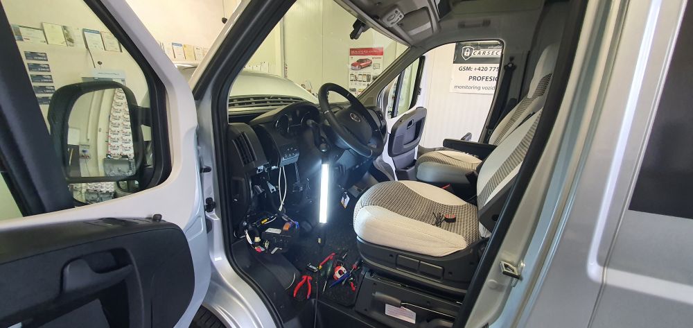 Domů > Galerie montáží > Karavany, obytné vozy > Zabezpečení obytného vozu Karmann Mobil autoalarmem a zámkem řazení Construct