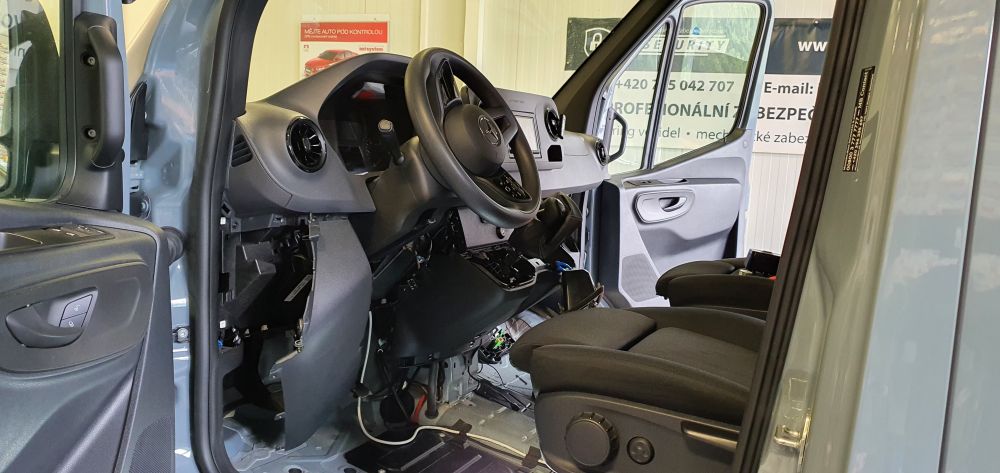 Zabezpečení obytného vozu Mercedes Benz Sprinter 4×4 autoalarmem Jablotron CA-2103 a zámkem řazení Construct.