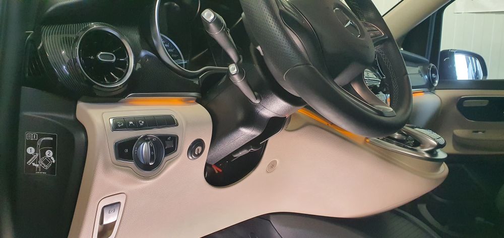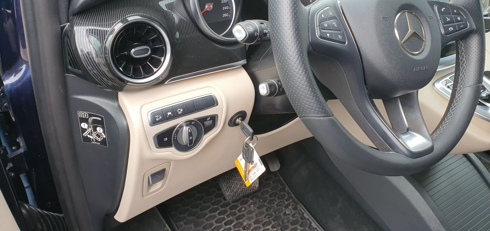 Domů > Galerie montáží > Mercedes Benz > Zabezpečení vozu Mercedes Benz V Marco Polo zámkem volantu Construct Steering
